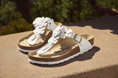 An icon of timeless design and legendary comfort, the Arizona sandal has been defining style since 1973. A floral print swirls black and white acro...